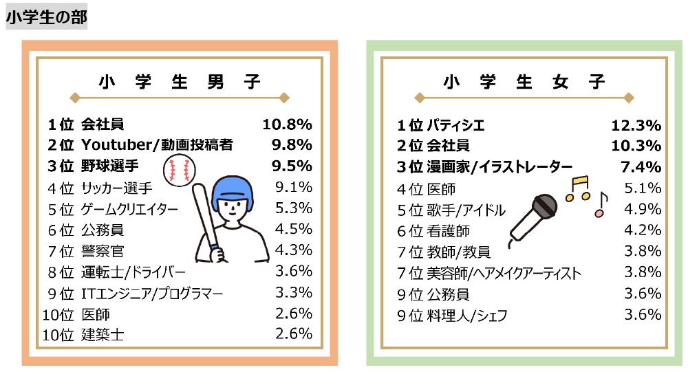 憧れの人の第一位は大谷翔平選手でしたが、4位にはYouTuberの「HIKAKIN」さんがランクインしていました。HIKAKINさん以外にも、ゲーム実況者や歌い手などYouTuberを挙げる子どもも多い結果になりました。